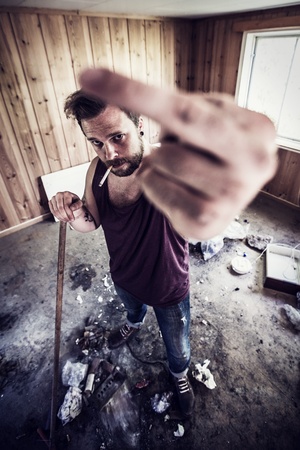 若い男と偏狭なパンク ロッカーを与える指 の写真素材 画像素材 Image